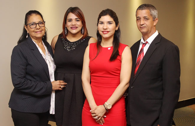 La coach Nurys Rosario, Edilís López , presidenta del Distrito Cooperativo 29; Enovi Bueno, gerente de la sucursal Santo Domingo de COOPSANO y Félix Tejada, encargado de Educación de la cooperativa.